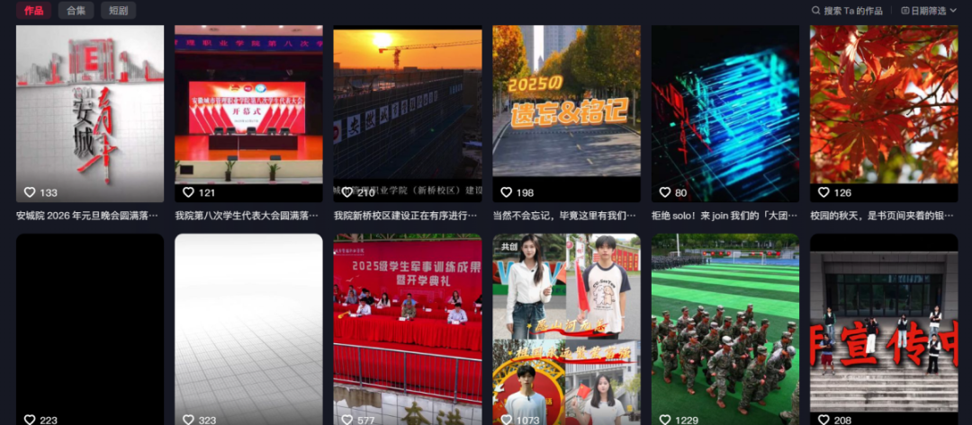 2025年9月,学院首次开设学院官方抖音号,纳入宣传思想与美育传播双重体系,通过短视频全景呈现美育活动与校园文化,与团委网站、安城青年公众号、视频号一起组成完整融媒体传播矩阵;完成校园广播站设备设施与栏目内容全面升级,优化传播体验,打造更具吸引力的播平台。
