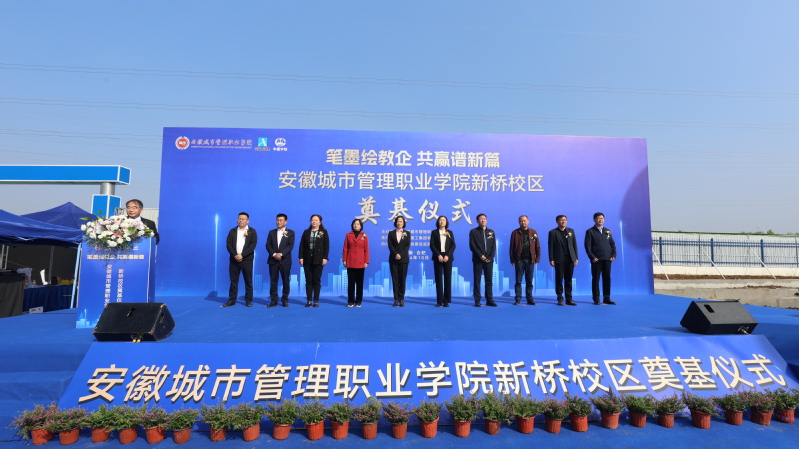 10月23日,学院新桥校区奠基仪式在项目现场举行。省直机关工委副书记陈欢,省委教育工委、省教育厅二级巡视员周晓芹,淮南市副市长陆晞,中铁建工集团有限公司副总经理、华东区域总部总经理姬虎琳,寿县县委副书记、县长孙奇志,省教育厅发展规划处副处长伍德金,新桥国际产业园管委会主任赵德兵,中铁建工集团第五建设有限公司总经理高耀出席奠基仪式。
