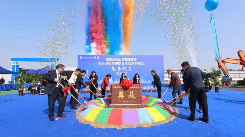 在场领导共同为新桥校区项目挥锹奠基,标志着项目进入全面施工阶段。新桥校区项目建成后,将开启学院异地办学新模式,全面提升学院培养更多合格的社会主义事业接班人和建设者的能力,为学院迈向更高层次办学水平和美好安徽建设注入强劲动力。(通讯员:谢欣然)