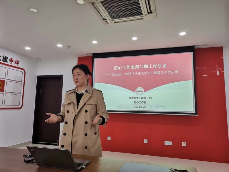4月28日,我校学生处大学生心理健康教育中心主任蒋婷婷老师受邀为合肥工业大学莳心工作室成员及对绘画心理学感兴趣的老师开展“我绘我心——绘画疗法在大学生心理教育中的应用”工作坊。本次活动由合肥工业大学校党委学生工作部(处)主办、莳心工作室承办。工作室负责人、食品与生物工程学院党委副书记李艳担任主持人。