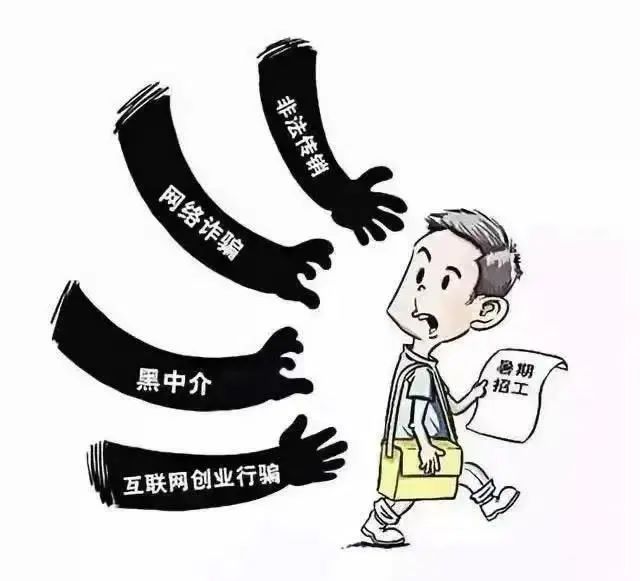 要到正规的职业介绍机构求职,应聘工作本身并不需要任何费用,提防“黑中介”,警惕用人单位或者中介机构以工作为名收取报名费、服装费、体检费、培训费、押金、岗位稳定金、资料审核费等费用,或者借保管经办社会保险、申办工资卡等业务名义,扣押求职者身份证、毕业证、学位证等个人证件原件。
