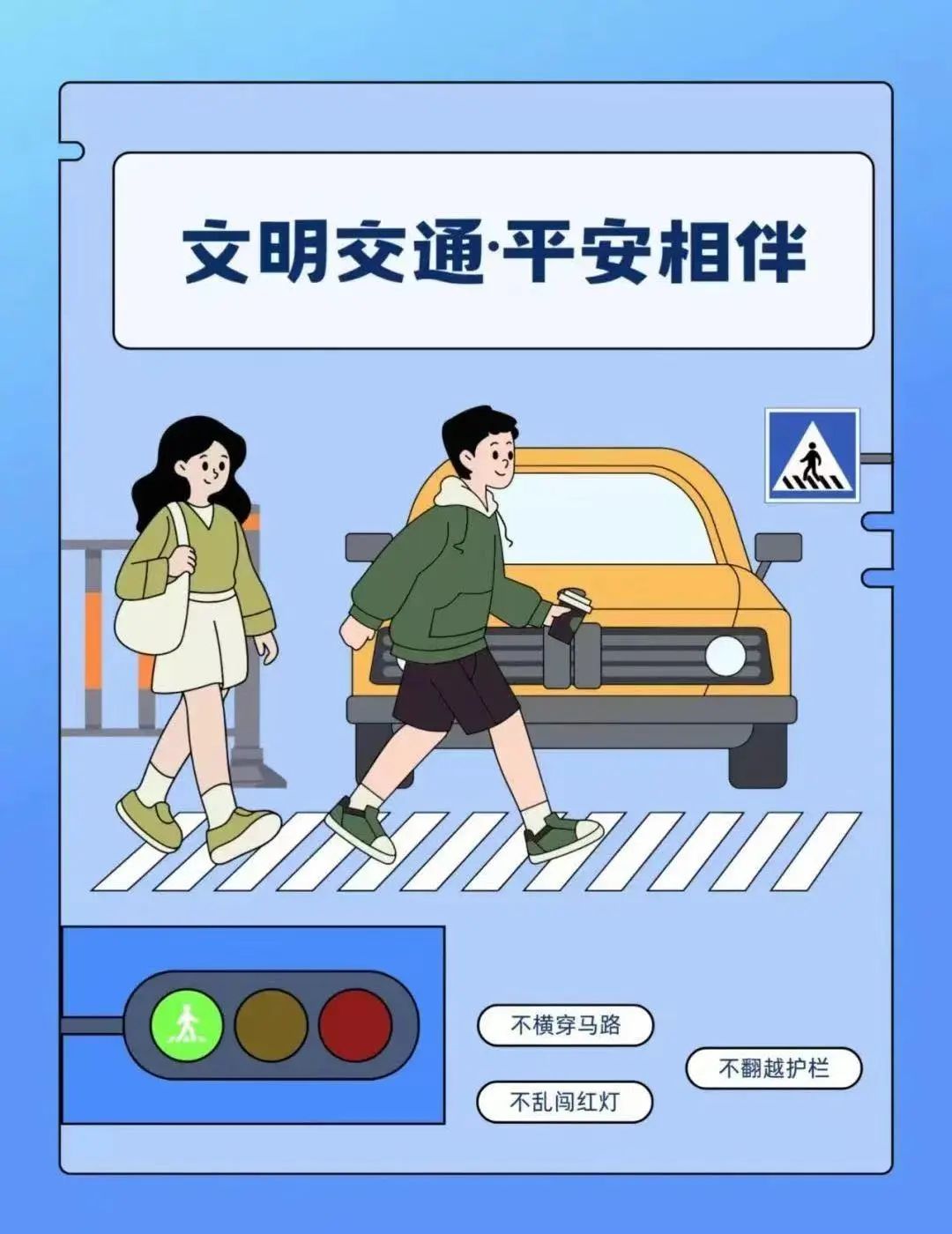 自觉遵守交通规则,不酒后或无证驾驶机动车;不要乘坐“黑车”,要到正规的营运部门购买车、船、机票,不要图小便宜而上当受骗。同时注意乘车安全,保管好自己的钱包和贵重物品,防止被扒窃;路途中与人交谈时,不要将有关个人的任何信息,尤其是姓名、身份证、家庭住址、电话号码、微信、银行卡号及其密码等告知陌生人。