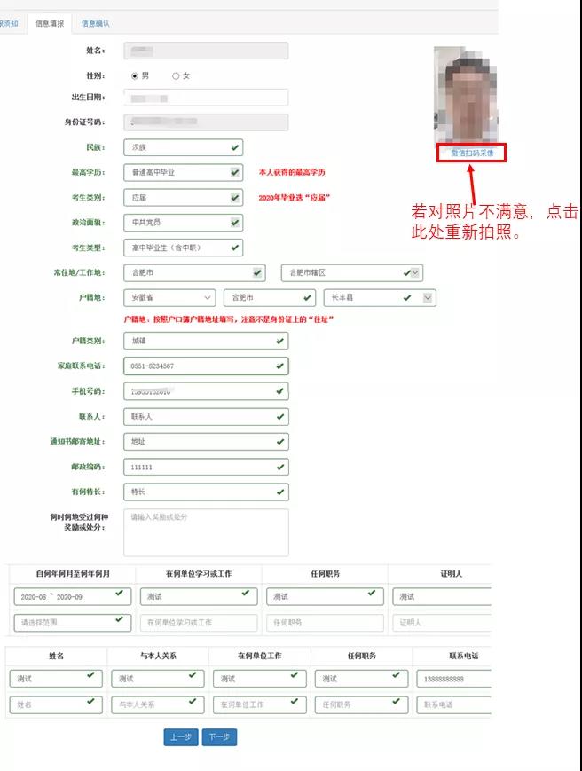 拍照完毕后,进入信息填报页面。