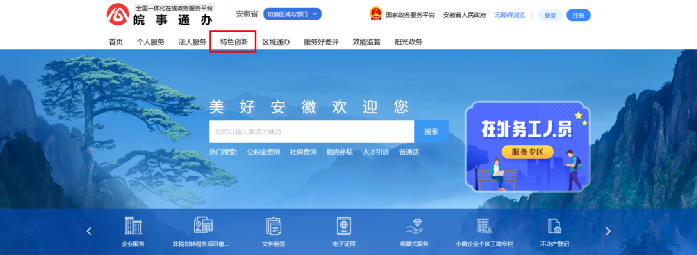 4. 登录后在网页顶端找到“特色创新”栏目,点击进入。