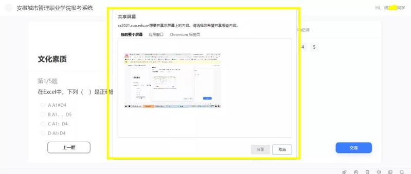 进入考试页面后,选择“应用窗口”共享即可,然后正常考试答题。