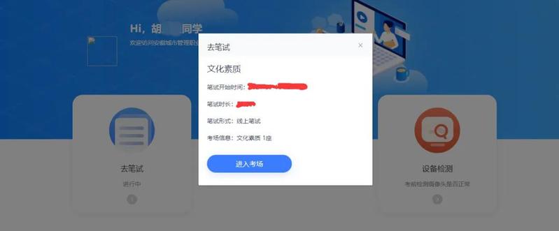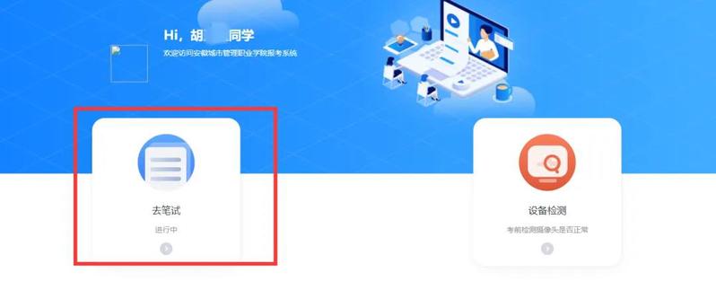 摄影头确认无误后,点击“去笔试”按钮,在出现的页面,进入考场。