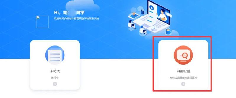 进入系统后,先进行设备检测,确保电脑摄影头良好。