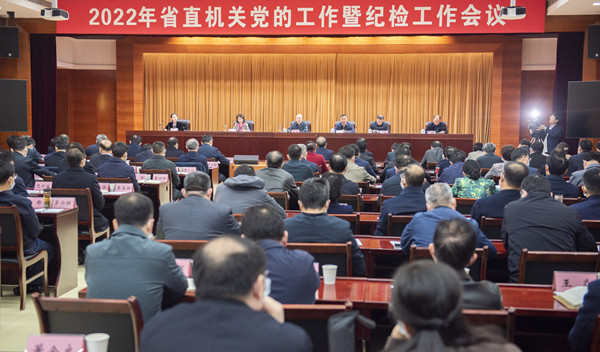 陈英在代表省直机关纪检监察工委作工作报告时指出,2021年,省直机关部门纪检组织坚持以党的政治建设为统领,紧扣机关党建高质量发展主题,以创建模范机关为目标,增强“四个意识”、坚定“四个自信”、做到“两个维护”,忠诚履职、守正创新,坚定稳妥推进全面从严治党、党风廉政建设和反腐败斗争,机关纪检工作高质量发展取得新成效。2022年,省直机关纪检工作要按照十九届中央纪委六次全会、省纪委十一届二次全会部署要求,自觉把握和运用党的百年奋斗历史经验,要聚焦“国之大者”,具体化常态化开展政治监督;要强化纪律约束,从严从实加强年轻干部教育管理监督;要深化纠治“四风”顽瘴痼疾,推进作风建设走深走实;要保持惩治高压态势,坚定不移深化反腐败斗争;要持续锻造过硬队伍,努力做党和人民的忠诚卫士,以实际行动推动纪检工作高质量发展。