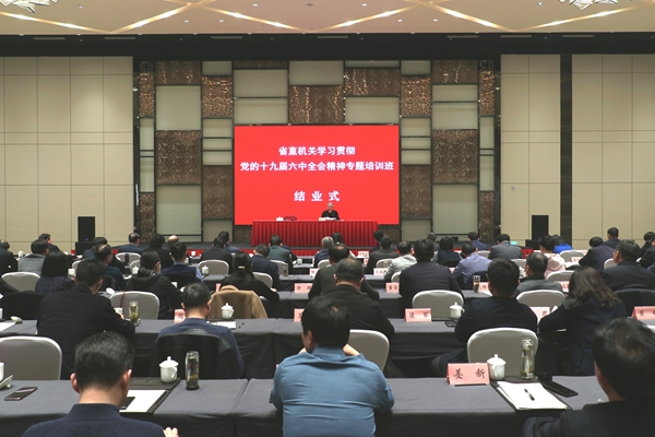 3月4日,省直机关学习贯彻党的十九届六中全会精神专题培训班结业式举行。省直机关工委一级巡视员李友平出席并作总结讲话,来自省直及中央驻皖单位130余名机关党委专职副书记(党办主任)参加结业式。