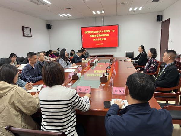 5月10日下午,省直机关工委副书记谢兵赴省委政法委、省发改委、省委讲师团等单位开展机关党建工作调研,并为荣获省总工会“先进女职工组织”和“文明家庭”、“五一巾帼标兵”的集体和个人颁授奖牌奖状。省委政法委副书记、一级巡视员李国庆、省发改委副主任郭浩及省委讲师团机关党委、机关工会相关同志参加活动,省直工会相关人员陪同调研。