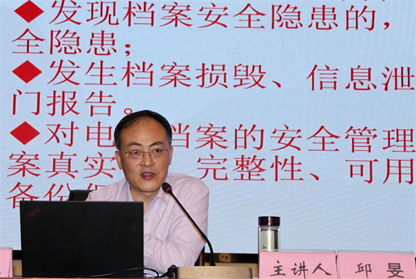 省委办公厅档案管理一处处长、一级调研员邱旻随后作了“强化依法治理 提升档案工作规范化管理水平”专题授课。邱旻对全面理解、准确把握和宣传贯彻新修订《档案法》的重大意义和主要内容进行了深入解读,对如何落实档案工作责任制、机关档案管理规定、明确归档范围和加强档案信息化建设等进行辅导,结合档案执法检查中的鲜活案例,上了一堂生动的档案培训课。