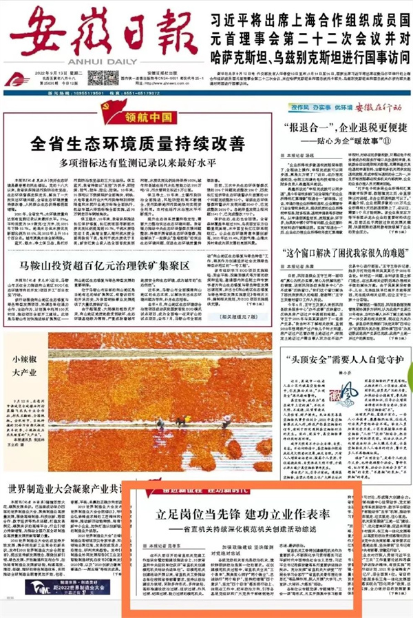 在不久前召开的省直机关党建工作座谈会暨效能建设推进会上,10家省直和中央驻皖单位获评“省直机关创建模范机关活动先进单位”。自模范机关创建活动开展以来,省直机关工委推动各单位按照省委部署要求,坚持以政治建设为统领,采取多种形式、多种途径,高标准建设政治过硬、组织过硬、作风过硬、纪律过硬、能力过硬的模范机关。