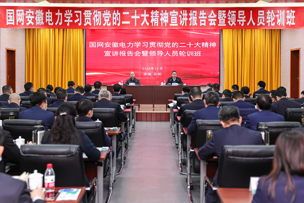 11月29日上午,党的二十大代表、省直机关工委书记朱斌赴国网安徽省电力有限公司作宣讲报告,面向企业党员干部宣讲党的二十大精神,促进全面学习、全面把握、全面落实。省电力公司党委书记、董事长陈安伟主持报告会。