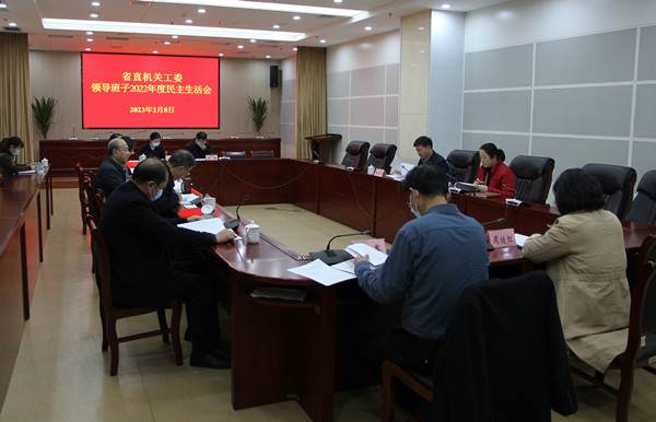 2月8日下午,省直机关工委领导班子召开2022年度民主生活会。会议紧扣主题,紧密结合实际,深入检视问题,进行党性分析,严肃开展批评和自我批评,并举一反三,推动工作改进提升。省委第一督导组成员徐家宝、徐静怡到会督导。工委书记朱斌主持会议并讲话,谢兵、朱宗庄、陈英等班子成员参加会议。工委二级巡视员杨祖涛,有关处室负责人列席会议。