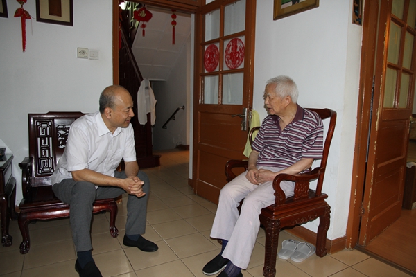 7月1日,工委书记朱斌带队走访慰问离休老干部、原工委书记杨道德,在询问老人身体和生活情况之后,向他介绍工委主题教育进展情况,赠送大字版《习近平总书记关于机关党建重要论述》学习资料,并叮嘱他保重身体,继续在推动机关党建高质量发展的伟大实践中发挥独特作用。