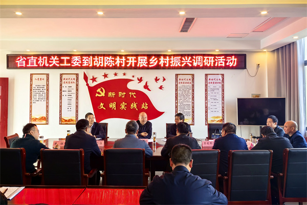 在省农业农村厅定点帮扶村泗城镇胡陈村,朱斌与省农业农村厅、省直机关工委、中电科第十六研究所、合肥学院、徽商银行股份有限公司等单位驻村干部座谈交流,对各单位立足职能优势和帮扶村实际扎实推进定点帮扶工作给予充分肯定。他指出,要提高政治站位,聚焦巩固拓展脱贫攻坚成果全面推进乡村振兴重点任务,把各项基础性工作抓牢抓实,筑牢基础;要坚持效果导向,把已有发展要素盘活用好,新增发展项目要谋深谋细,持续发挥作用;要提升群众工作能力,多走访交流,把群众工作做实做细;要梳理盘点任期各项工作,进一步归纳总结经验做法,帮助企业和能人大户完善发展模式,提升可持续发展能力,以扎实的工作成效为单位争光添彩。朱斌表示,工委将一如既往关心支持驻村干部工作,认真做好各项服务保障。