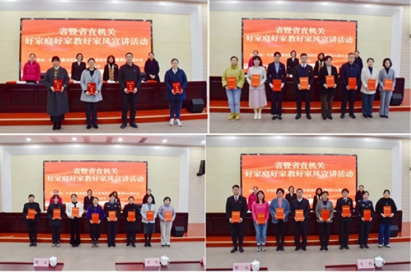 为深入学习贯彻习近平总书记关于注重家庭家教家风建设重要论述,弘扬社会主义家庭文明新风尚,贯彻落实中国及省妇代会部署要求,近期,省直机关工委、省妇联在省直机关工委党校联合举办省暨省直机关“好家庭好家教好家风”宣讲活动。省直机关工委副书记陈欢、省妇联副主席王艳向受表彰的省暨省直机关最美家庭、最美婆媳、清廉家庭代表颁发奖牌证书。
