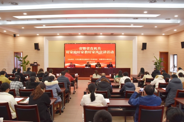 此次宣讲活动还邀请省委党校(安徽行政学院)肖月作《学习包公家训弘扬优良家风》专题讲座。省直机关获奖家庭、职工家庭及妇女代表约100人参加。